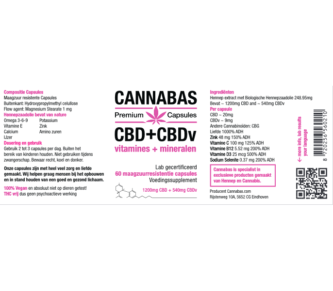 Cbd Cbdv Vitamins Minerals In 60 Stomach Acid Resistant V Capsules Cannabas